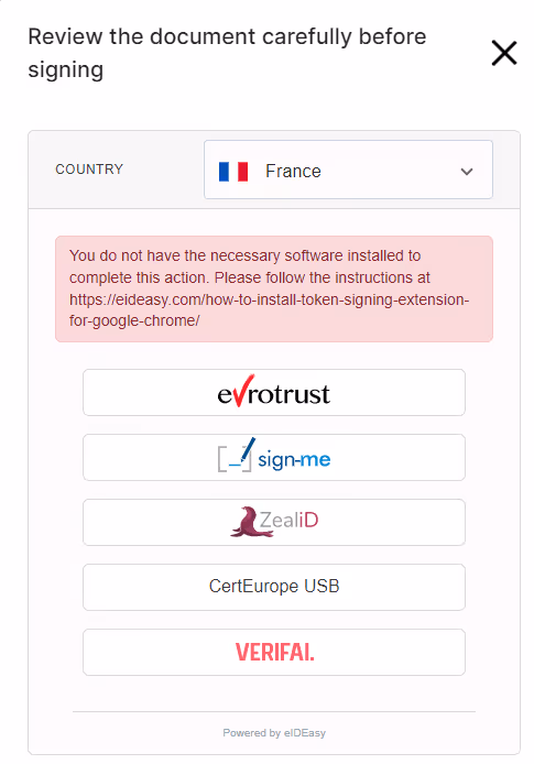Para poder firmar electrónicamente con tarjetas inteligentes (por ejemplo, tarjetas de identificación) y tokens USB, tendrá que instalar el Firma de tokens extensión para Google Chrome. Para garantizar la mejor funcionalidad, instálala siguiendo las instrucciones anteriores (y no desde la Chrome Web Store en el caso de las extensiones).