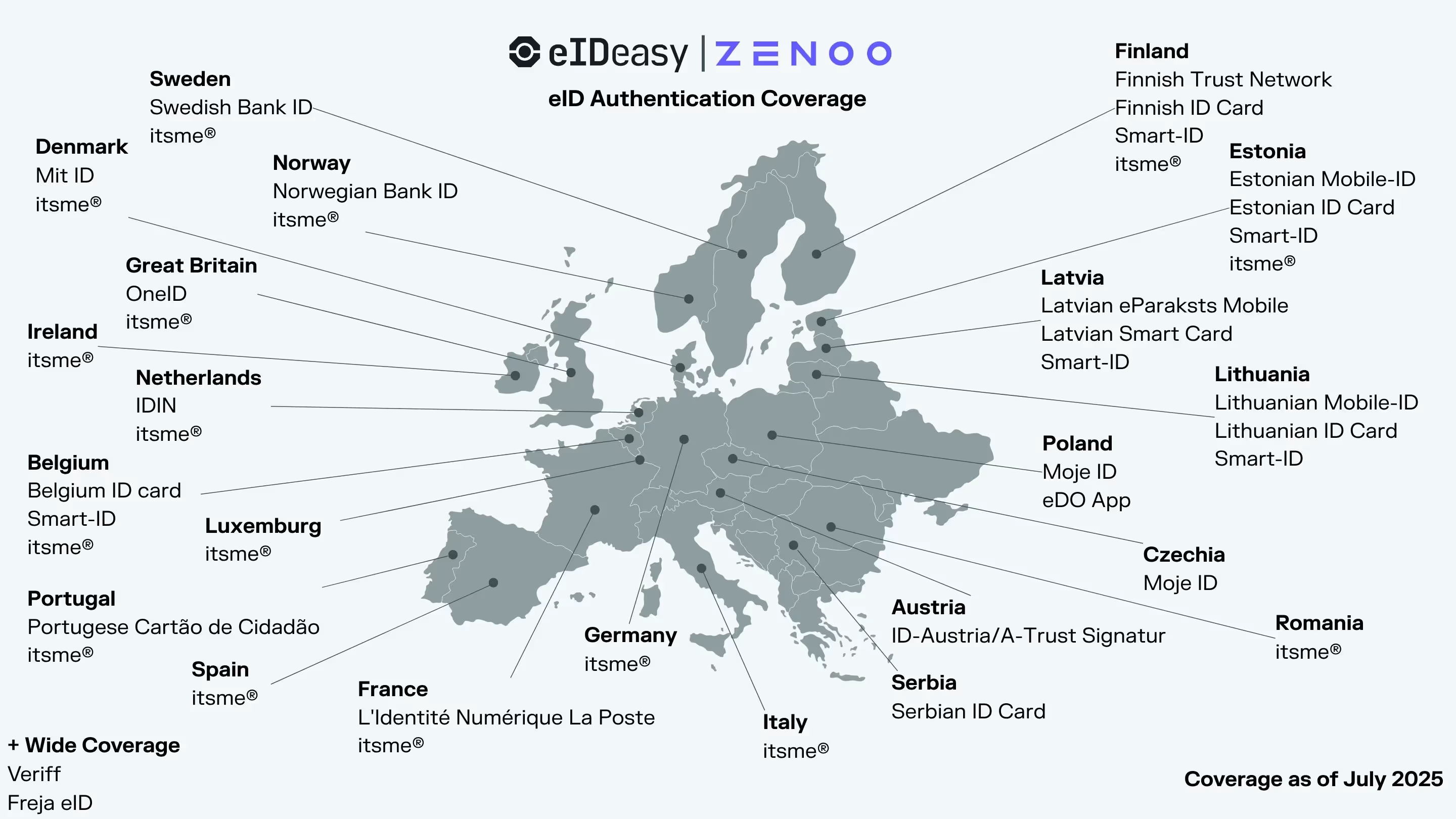 The Zenoo + eID Easy integration is purpose-built for businesses that need strong, regulatory-grade, government-backed eID coverage across Europe.