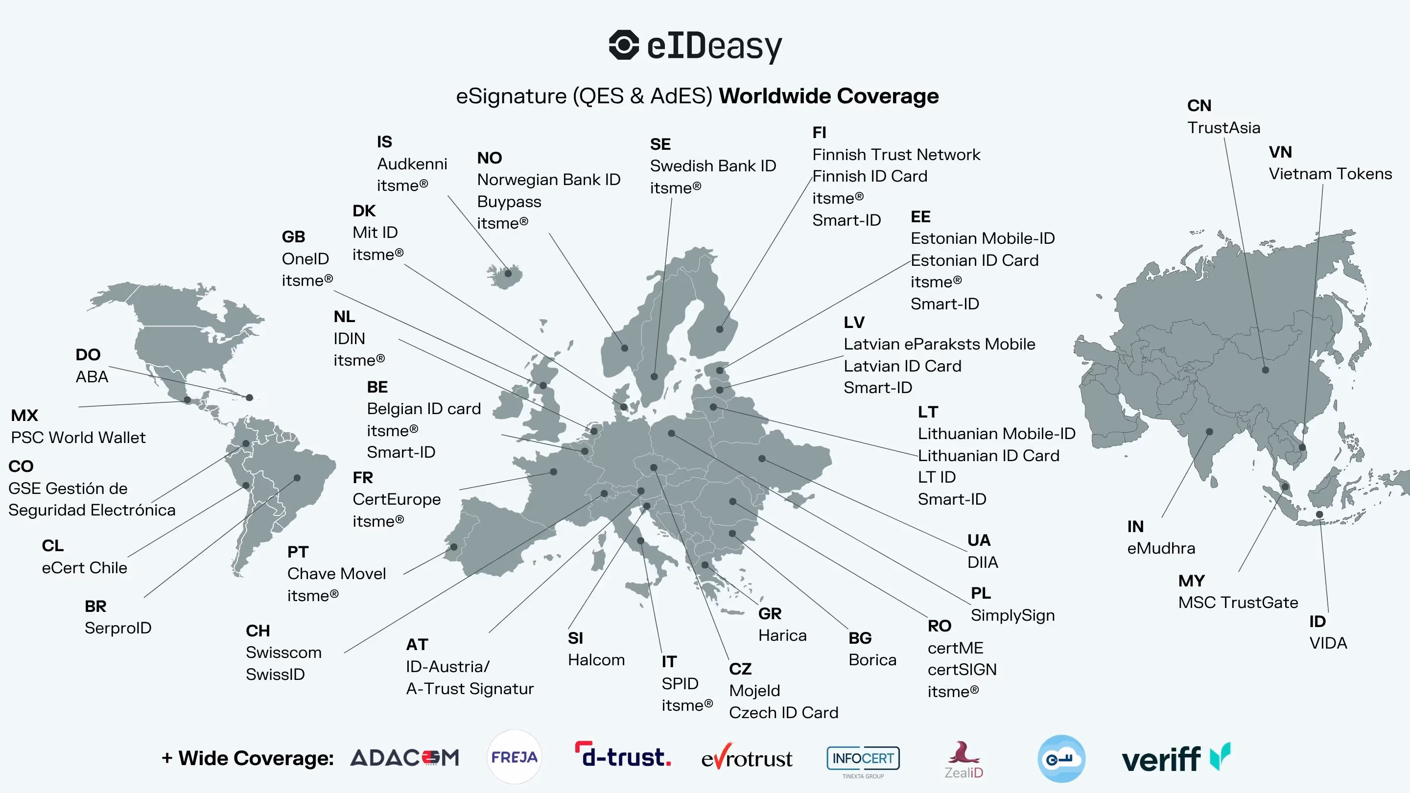 eID Easy conecta Adobe Acrobat Sign a una red de Más de 60 proveedores de firma electrónica calificados y avanzados en todo el mundo.